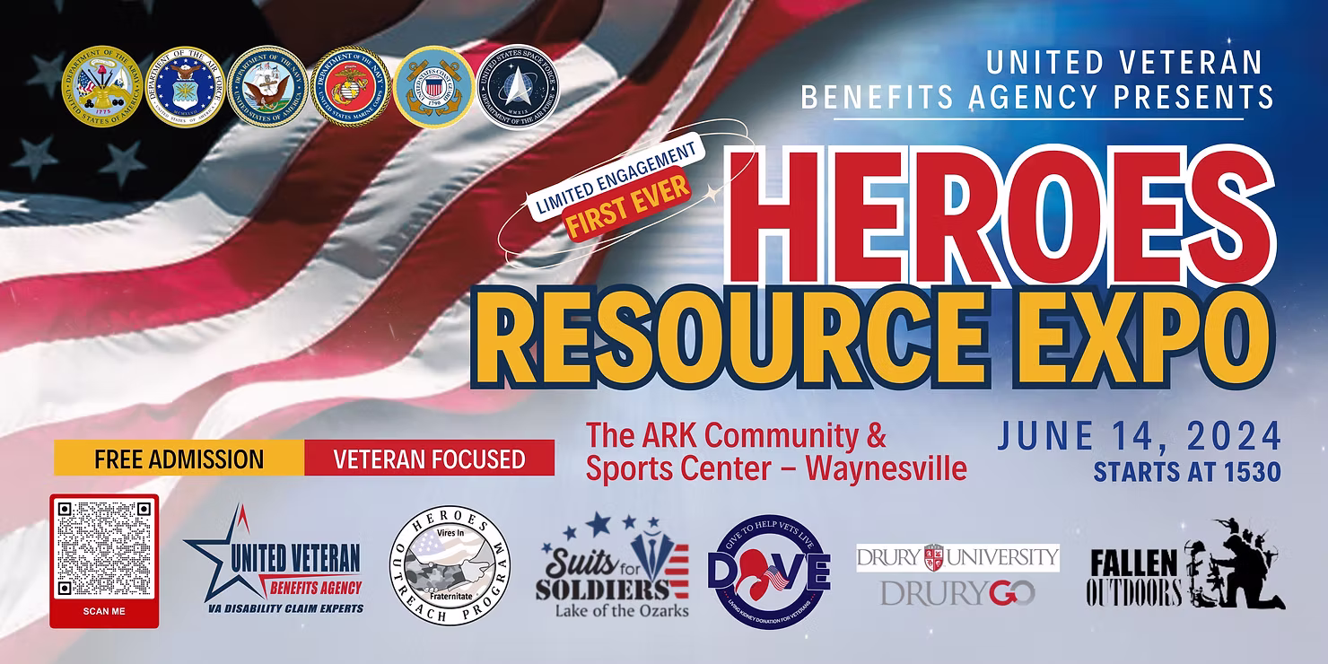 On June 14th, 2024, United Veteran Benefits Agency (UVBA) will host the Heroes Resource Expo at The Ark Community and Sports Center in Waynesville, Missouri. This unique event aims to connect veterans, active-duty military personnel, and their families with a wide range of organizations dedicated to providing essential resources, services, and support.
